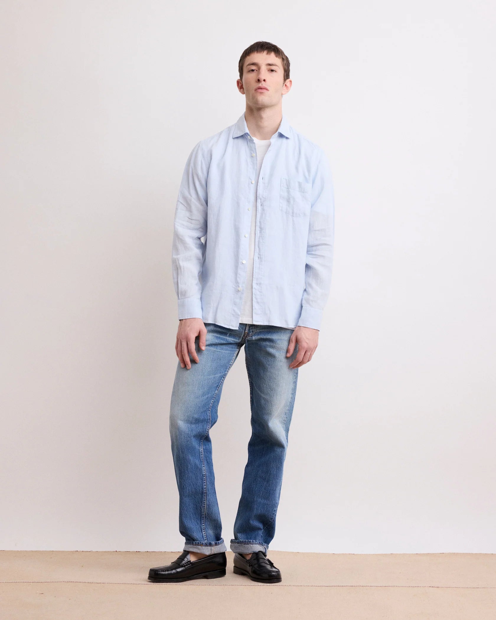 Hartford shirt in 100% linen. Color: light blue. Material: soft and breathable linen. Regular fit. Approx. chest 52 cm, length 75 cm (M). Suitable for everyday or vacation wear.