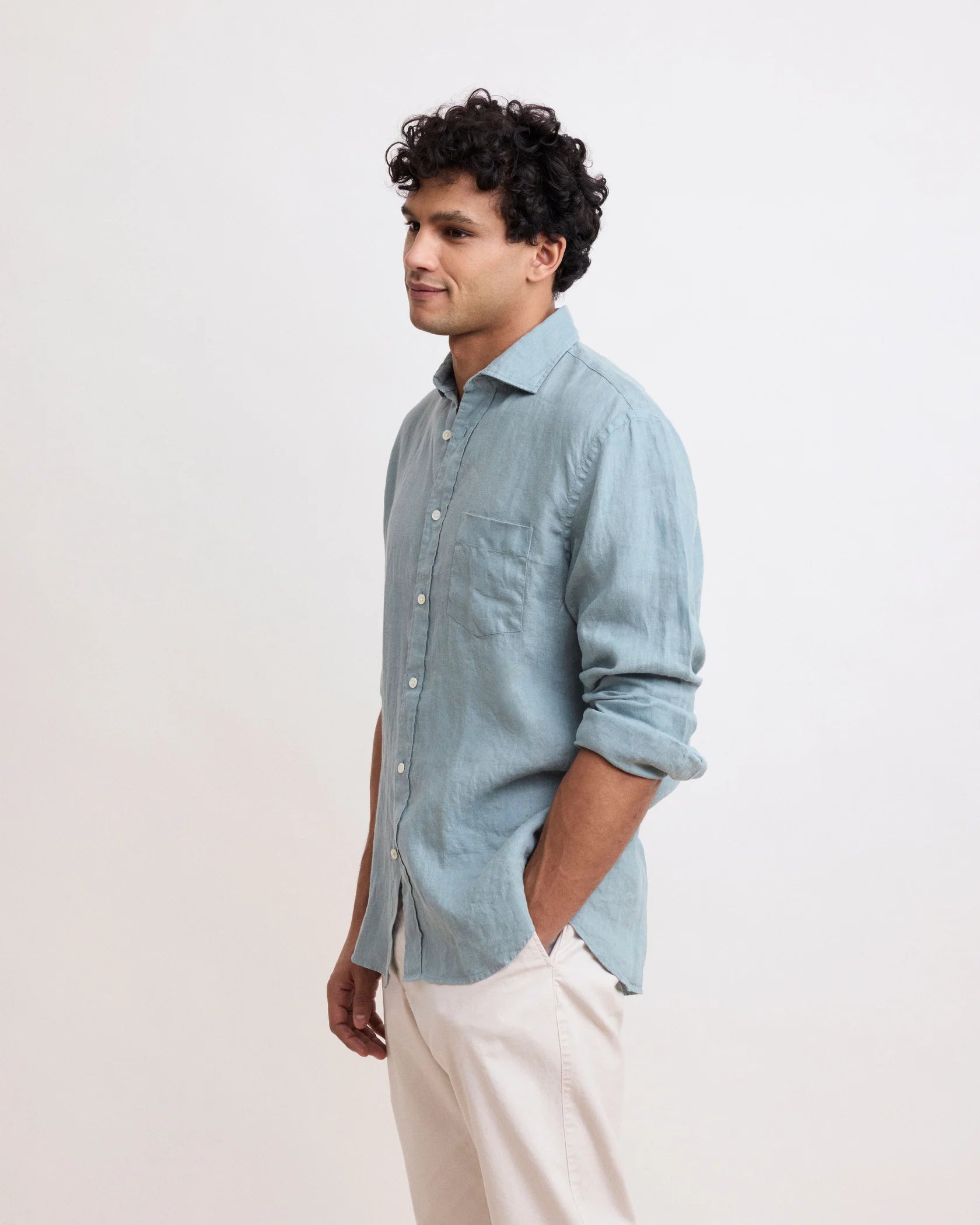 Hartford shirt in 100% linen. Color: celadon green. Material: soft and breathable linen. Regular fit. Approx. chest 52 cm, length 75 cm (M). Suitable for everyday or vacation wear.